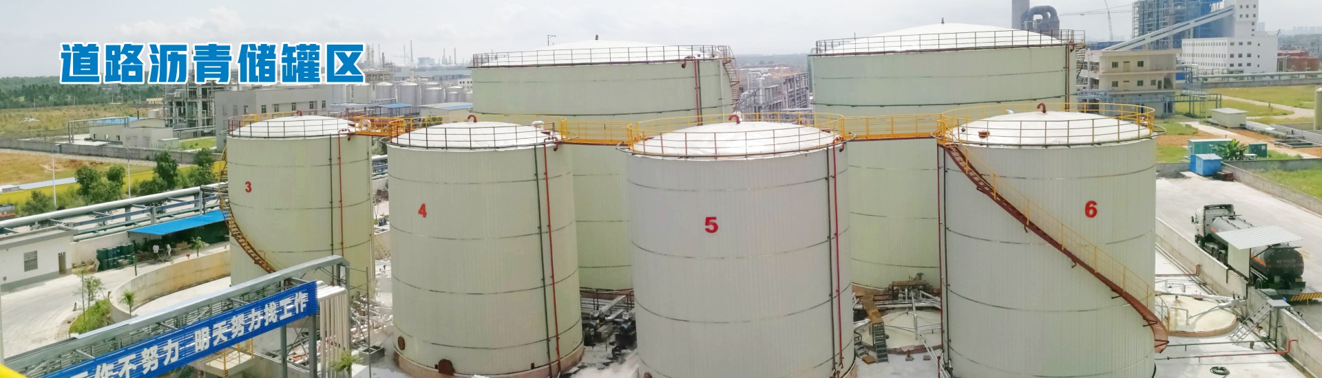 道路瀝青儲(chǔ)罐區(qū)14400 m3,可儲(chǔ)存各種牌號(hào)的基質(zhì)瀝青原料油,滿(mǎn)足廣大客戶(hù)不同的需求。